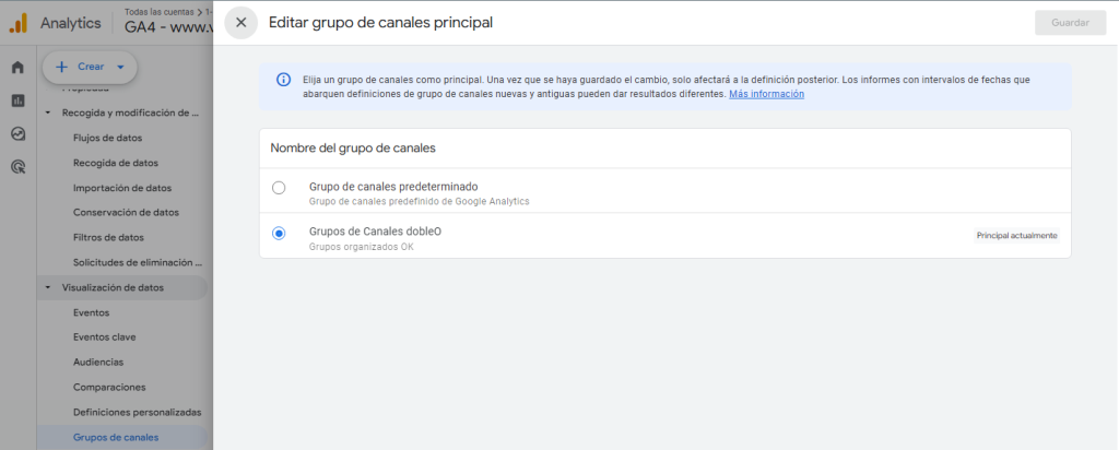 Con estos pasos, podrás crear un grupo de canales nuevo en GA4 que se adapte a tus necesidades.