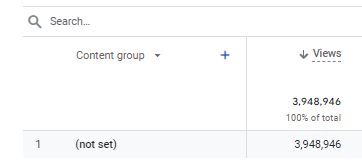 Si no has configurado ningún tipo de agrupamiento de contenido en GA4, verás (not set) en este informe. Pero si por el contrario, si que has configurado una agrupación de canales y ves el (not set) te recomendamos que revises los siguientes elementos:
