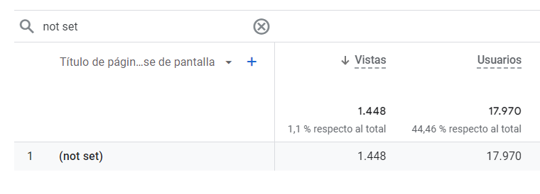 Si en el valor de la dimensión «Título de la página y clase de pantalla» aparece un «(not set)» te recomendamos revisar lo siguiente: