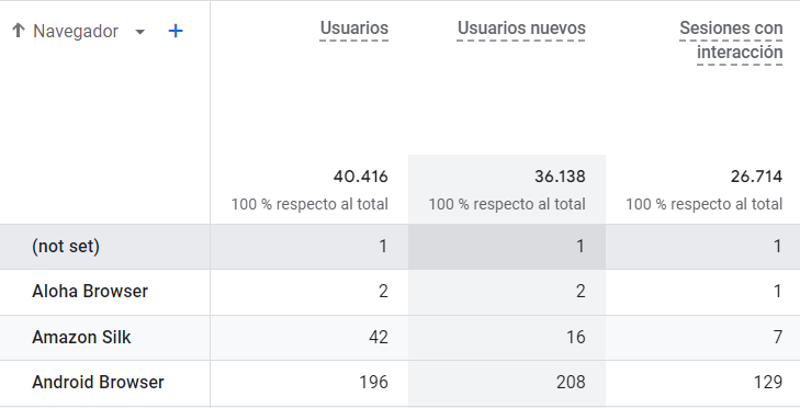 ¿Por qué sale (not set) en el informe de Navegadores en GA4?