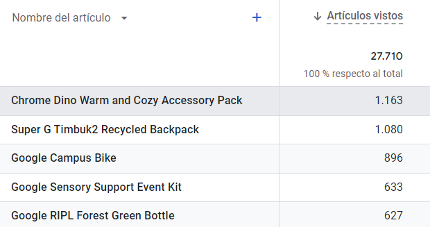 Algunas veces veremos el (not set) en el valor de la dimensión «Nombre del artículo» en GA4.