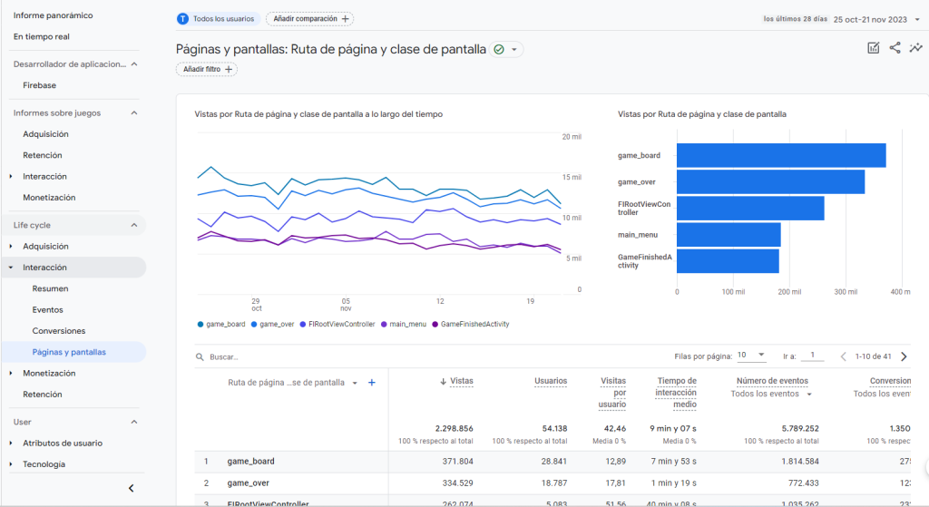 Lo primero que debemos hacer es entrar a nuestros informes y buscar el informe «Páginas y Pantallas» dentro del informe Interacción