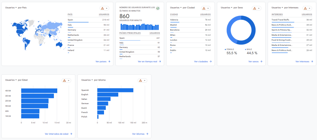 Con esta funcionalidad, podemos recopilar y tener acceso a los informes demográficos de GA4.