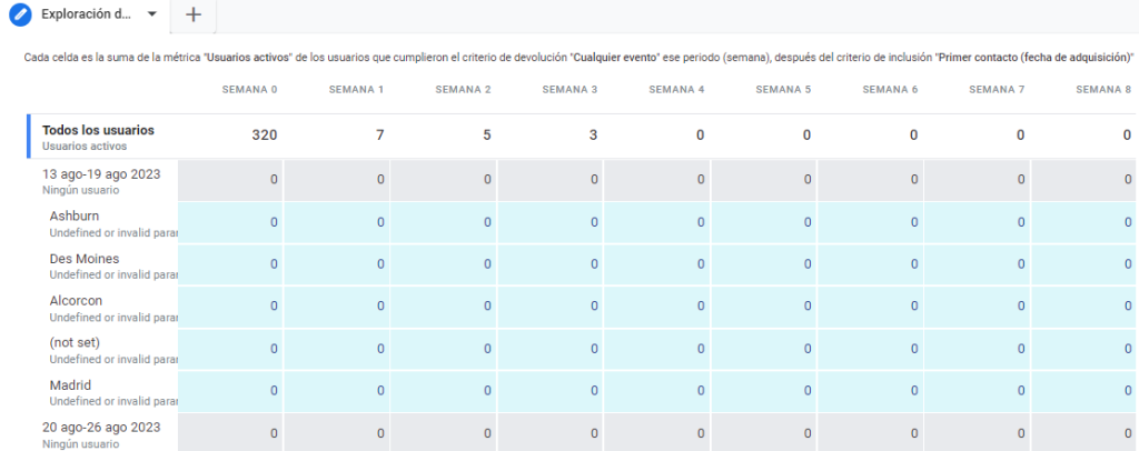 - Informe de ciclo de vida del usuario o Tiempo de vida de los usuarios