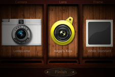 Cuando vayas a hacer la primera foto te encontrarás con 3 columnas en la pantalla. En la columna de la izquierda tienes que elegir el tipo de cámara (las hay hasta de 4 disparos al mismo tiempo), en la columna del medio eliges el fitro y en la última columna el marco. Los marcos y los filtros son diferentes según la cámara que elijas.