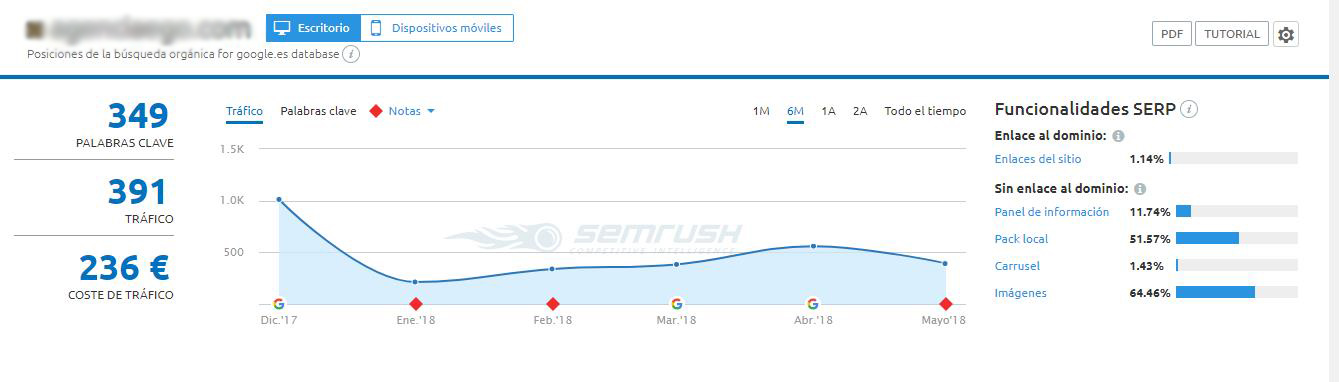 En este caso vemos como, desde marzo de este año hubo una subida de tráfico y luego este mes de mayo vuelve a las estar como en marzo. (Caso escritorio)