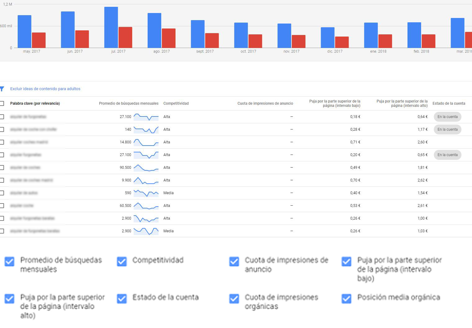 • La competitividad en un formato distinto. Pasó de ser mostrada en porcentaje a ser clasificada como “alta”, “media” o “baja”. Este cambio nos genera preguntas a la hora de elegir las palabras según la competitividad ¿Cuáles son los parámetros que se incluyen para cada una de las clasificaciones?