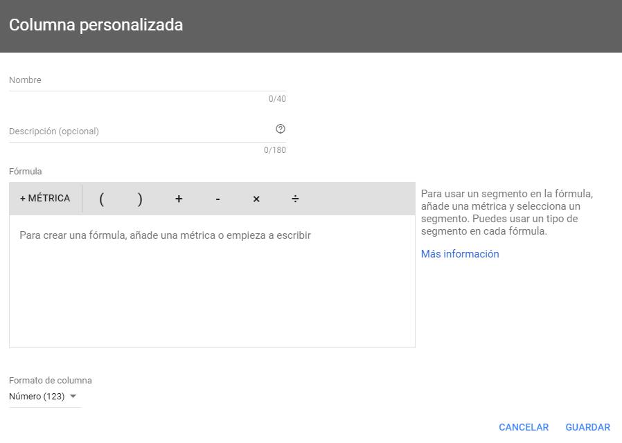 2. Columnas con métricas personalizadas