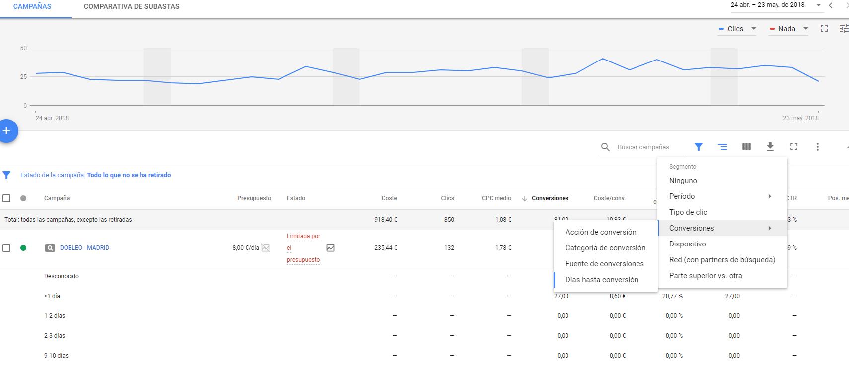 Saber el tiempo que tardan los clientes en generar conversiones por campaña