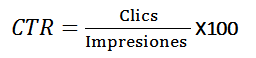 El CTR, del inglés Click Through Rate, representa el porcentaje de clicks que recibió una URL/anuncio y se define como la relación entre el número de impresiones que ha tenido una URL/anuncio cuando aparece en los resultados de búsqueda y los clicks obtenidos sobre dicho resultado/anuncio. Se calcula de la siguiente forma: