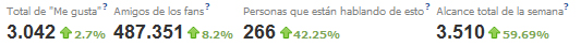 Dentro de estos cuatro parámetros se puede evidenciar la búsqueda por generar información relevante para la captura de nuevo público y el seguimiento de los fans actuales. Por otro lado como sucede con “ Amigos de los fans ” se puede calcular el número de personas a quienes puedes llegar si todos los fans comunican de tu página a sus amigos.