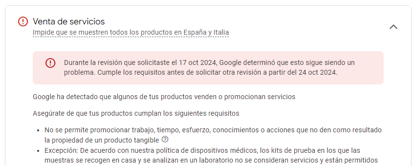 - Podemos darle visibilidad a Servicios rechazados directamente por el Google Merchant.