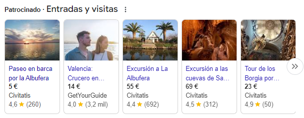 Hablamos de los anuncios que vienen marcados con ENTRADAS Y VISITAS y que a simple vista, parecen anuncios de Shopping.