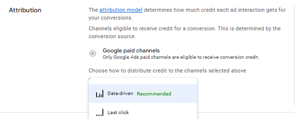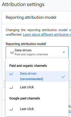 Por defecto, GA4 usa el modelo basado en datos (data-driven), mientras que Google Ads también permite usar ese modelo o elegir otros como último clic o lineal.