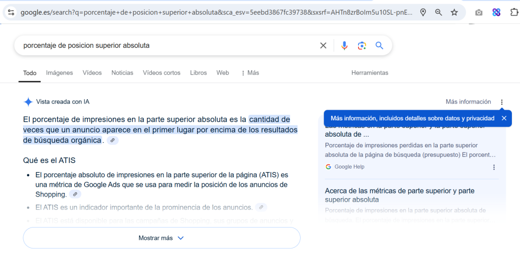 Estos aumentos podrían explicarse por el efecto de Autoridad y Confianza que genera aparecer en los bloques destacados generados por IA, lo que favorece la interacción del usuario con la marca, tanto en enlaces orgánicos como en anuncios.