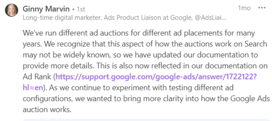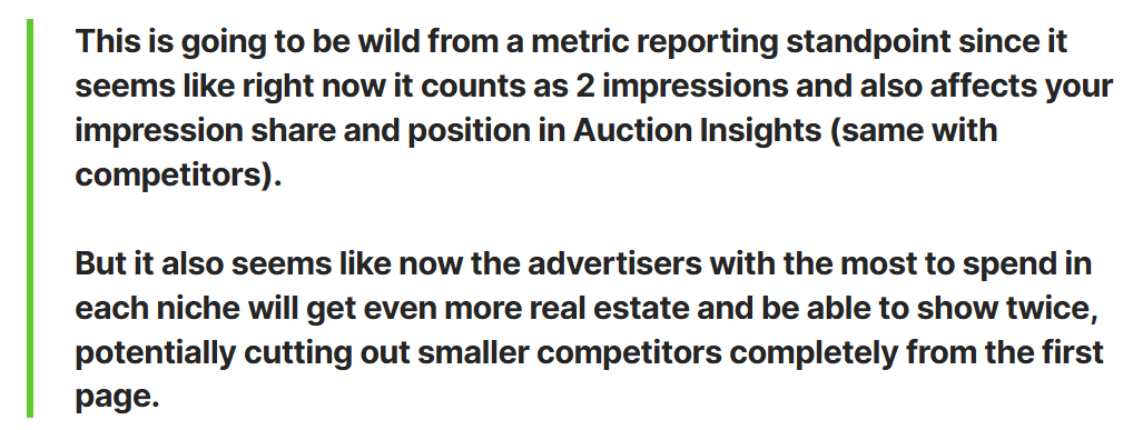 Con este cambio, ahora Google admite 2 anuncios por usuario. Es importante mencionar que en Febrero 25, Google aclaró que se realizan pujas diferentes para cada ubicación dentro de Google.