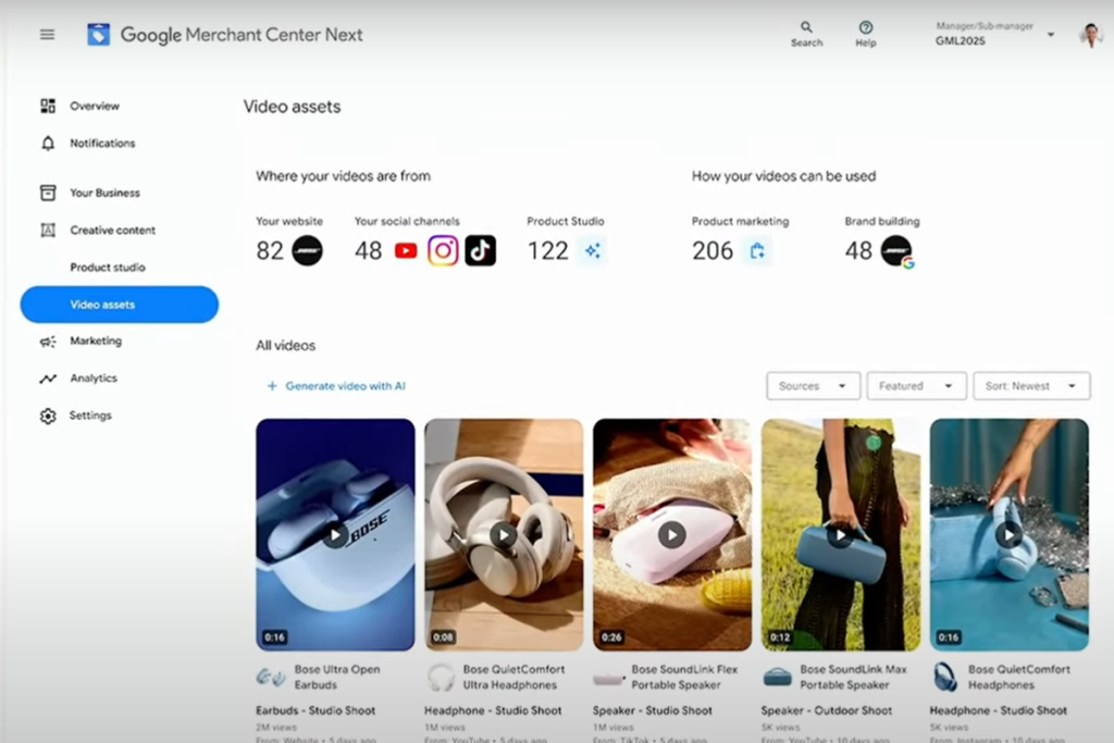 • Integración de herramientas creativas: Google anunció que sus modelos de generación de video e imagen, Veo e Imagen, estarán disponibles dentro de Google Ads y Merchant Center, facilitando la creación de contenido visual impactante para las campañas publicitarias.