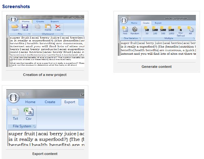 Generar descripciones únicas es indispensable para hacer SEO. En efecto, el spinning content permite generar aleatoriamente, textos diferentes gracias a las paráfrasis. Esto es útil porque los motores de búsqueda ignoran el contenido duplicado. De hecho, toman en cuenta sólo una versión de este contenido. Para hacerlo, existen herramientas como Synonymizer que pueden generar más de 1000 contenidos diferentes a partir de un texto básico con sinónimos de las palabras claves. Esto es spinning content.