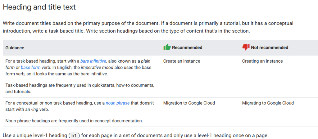 Fuente: https://developers.google.com/style/headings