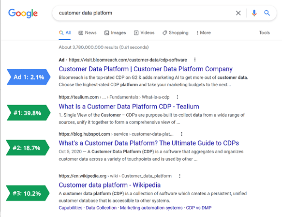 Fuente: https://firstpagesage.com/reports/google-click-through-rates-ctrs-by-ranking-position/