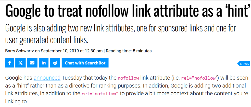 Los enlaces nofollow pueden ayudar a generar tráfico, mejorar la visibilidad y construir relaciones de marca. Además, Google en el 2019 comentó que los enlaces nofollow ahora se consideran como sugerencias.